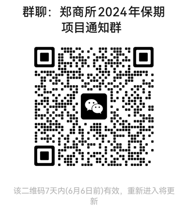为方便各项目申报单位及时获得郑商所相关工作安排,现将微信群二维码公布如下(6月6日前有效),请各项目申报单位按照“单位名称—姓名”发送进群申请。