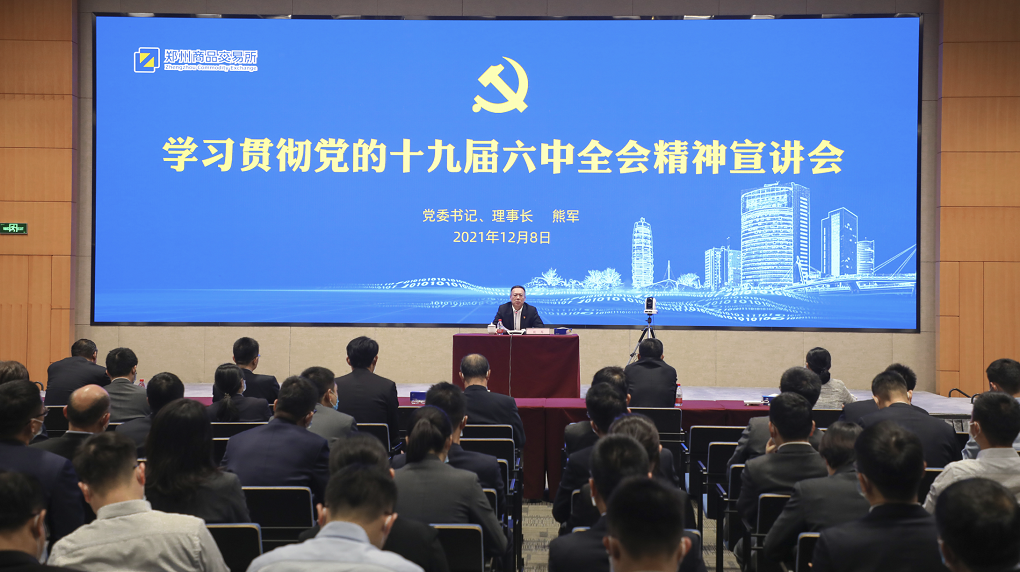 2021年12月8日,郑商所党委书记、理事长熊军以“线上+线下”方式作学习贯彻十九届六中全会精神宣讲