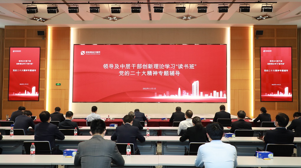 2022年11月1日,郑商所领导及中层干部创新理论学习读书班开展集体学习,参加中央党校李志勇教授所作的“习近平新时代中国特色社会主义思想新发展——全面准确学习党的二十大精神”在线专题辅导
