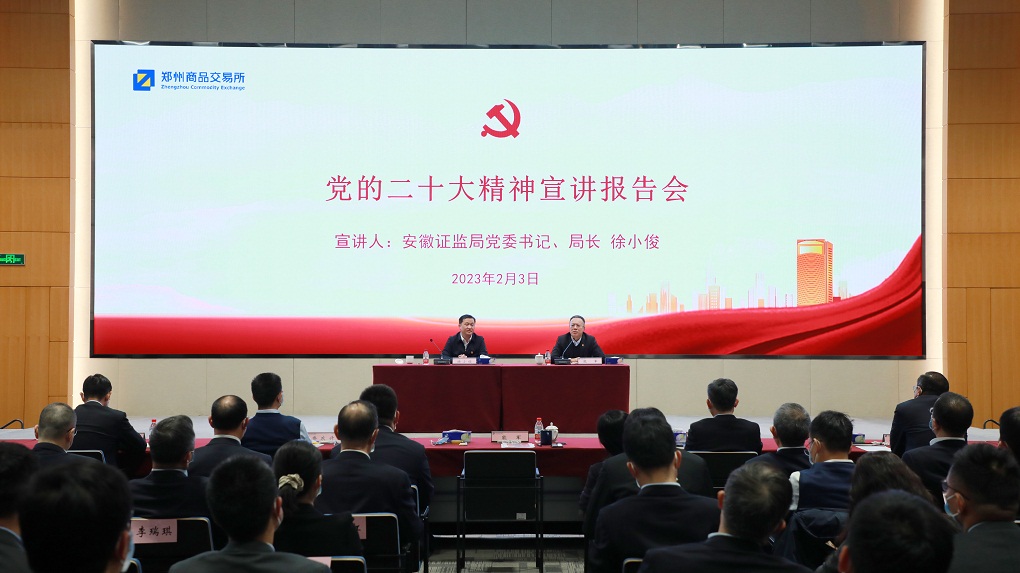 2023年2月3日,郑商所举行党的二十大精神宣讲报告会,证监会系统党的二十大精神宣讲团成员、安徽证监局党委书记、局长徐小俊作宣讲报告