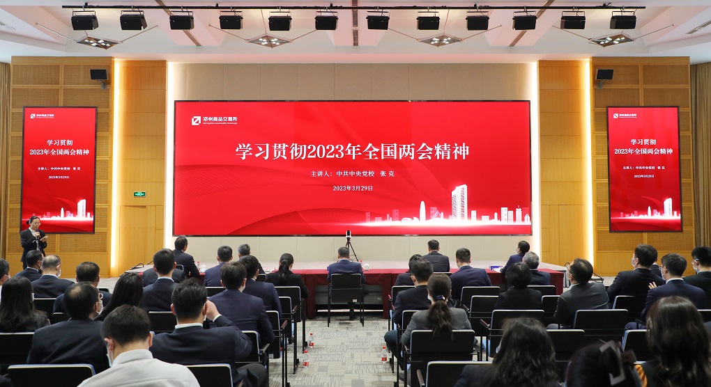 2023年3月29日,郑商所组织集中学习,邀请中央党校专家为全体党员职工作全国两会精神专题辅导。