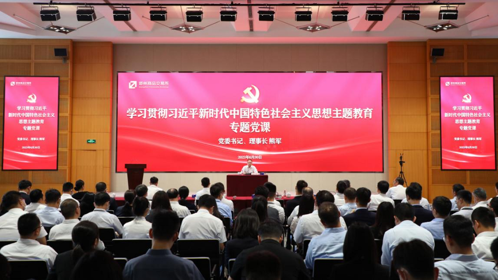 2023年6月30日,郑商所组织“七一”集体党日活动,党委书记、理事长熊军讲授专题党课,引导党员重忆入党初心,牢记党员身份。