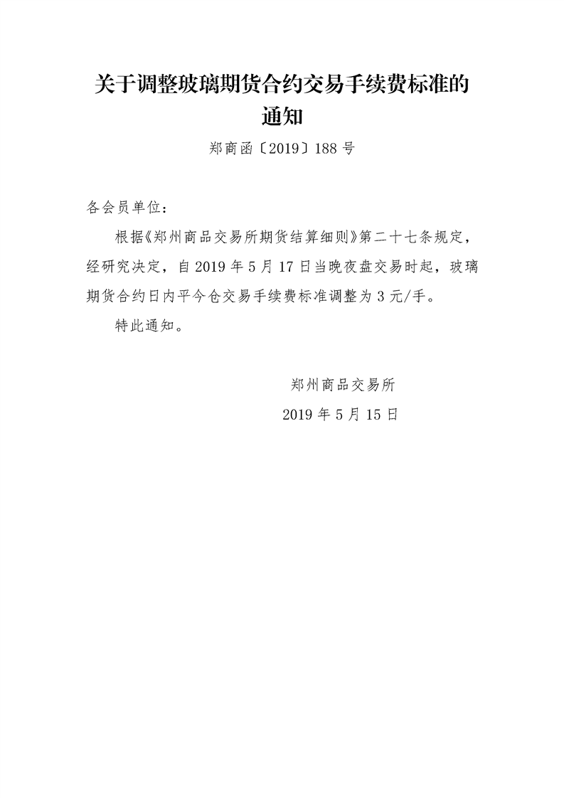 关于调整玻璃期货合约交易手续费标准的通知
