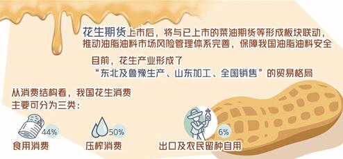 中国植物油行业协会副会长陈刚在接受采访时表示,目前,我国花生产业缺乏连续的市场报价,价格灵敏度较差,容易出现暴涨暴跌的情况,农户和企业经营存在较大风险。上市花生期货后,通过期货市场公开、透明、高效的集中竞价交易机制,可以形成连续、权威的远期价格,为产业主体提供有效的价格预期和避险工具。同时,还可以提高花生生产的集约化程度,促进花生产业结构升级。