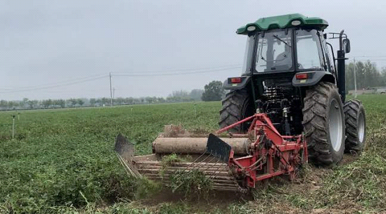 “突突突……”在王大塘花生基地,几台花生收获机向参观人员展示花生收割场景。位于正阳县产业集聚区的正阳新地花生集团有限公司,自2018年起打造了“正阳花生全产业综合体暨花生特色小镇(花生天地田园综合体)”项目(简称“花生小镇”),专业从事农业产业领域一二三产业融合发展的花生全产业链事业。
