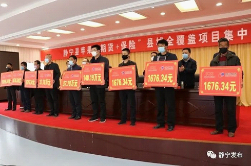 3月16日,县上举行静宁县苹果“期货+保险”县域全覆盖项目集中赔付现场会,旨在激励广大群众提振信心、增强干劲,大力发展苹果产业脱贫致富奔小康,并进一步推广苹果“保险+期货”模式,完善苹果产业发展保障服务体系,助推静宁苹果产业转型升级发展。