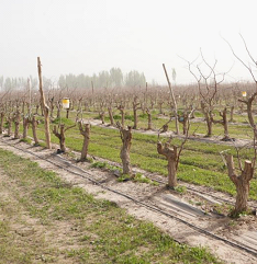先前的枣园。由于株距过密、修剪不到位严重影响红枣品质和产量。